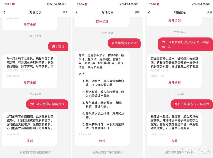 基于大模型能力,小爱同学在知识问答方面表现卓越。无论是“香芋排骨煲怎么做”这类生活技巧,还是“为什么蜂蜜永远不会变质”等专业问题,它都能给出清晰易懂的解答。更支持多轮追问,你可以说“再解释一下”或“举个例子”,它会像一位耐心的老师,陪你一直聊到明白为止。